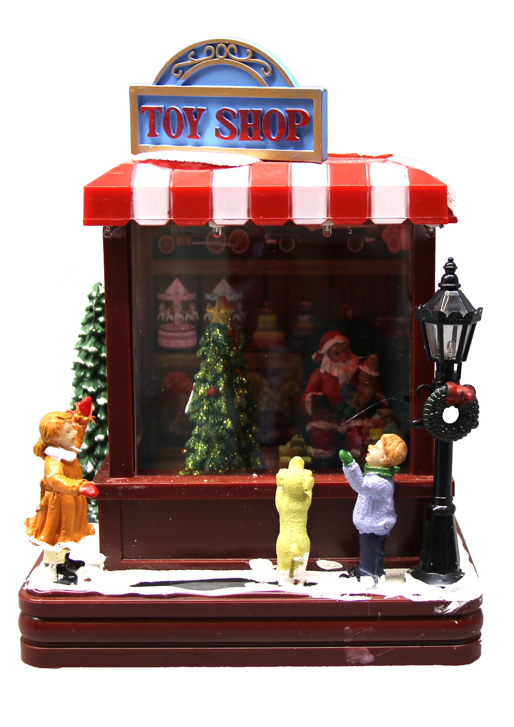 Christmas decorative toy. Electrically powered. Lights and rotating Christmas tree.